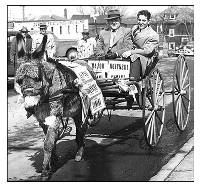 Nowakowski was an energetic, often creative fellow. His donkey stunt may seem corny, but thanks to his urging, the Solvay Democrats were the first Onondaga County politicians to use television to reach voters – not through commercials, but through 30-minute programs in which candidates introduced themselves and explained their goals and accomplishments.