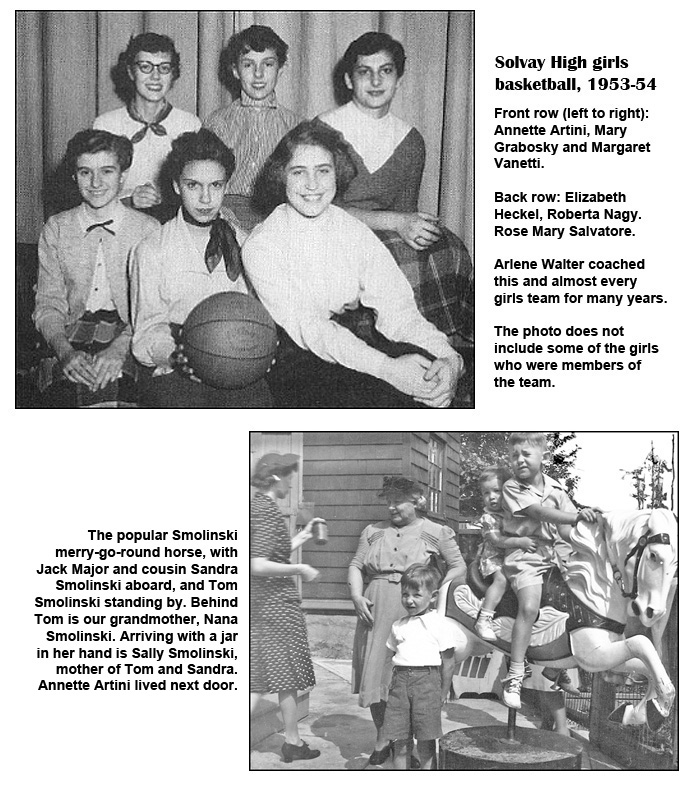 "I lived on the corner of Freeman Ave. and Conklin Street," Annette wrote. "My father Vincent had his grocery store there, serving the needs of Solvay for many, many years. I attended Prospect School which was right across the street, then Intermediate and of course Solvay High. Tom Smolinski lived right next door to me until his folks built a home on the top of the hill overlooking the high school. I used to climb over the fence to ride on the merry-go-round horse that Tommy's father installed on a washer machine motor. How I loved that horse! |
